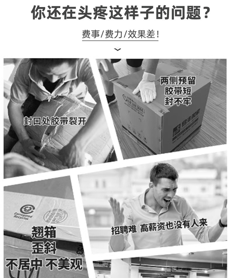 - 節省人力成本:由于實現了高度自動化,減少了人工操作環節,降低了對人工的依賴。原本需要人工完成的封箱和打包工作,現在可以由機器高效完成,從而節省了大量的人力成本,同時也減少了因人工操作失誤而導致的包裝質量問題。