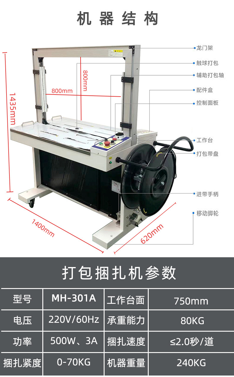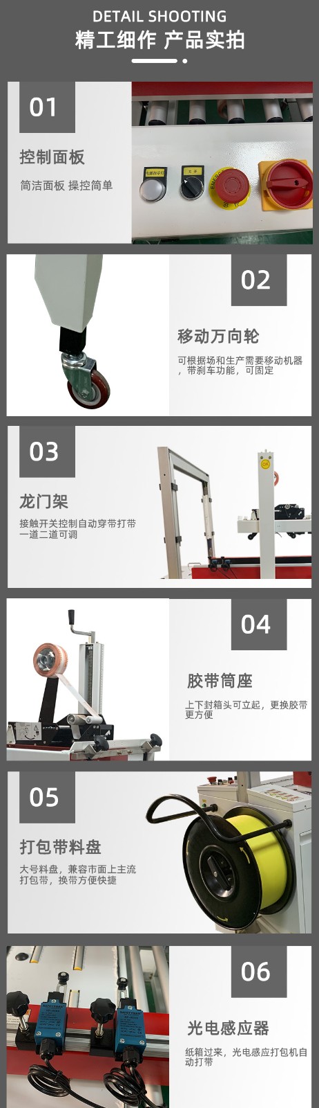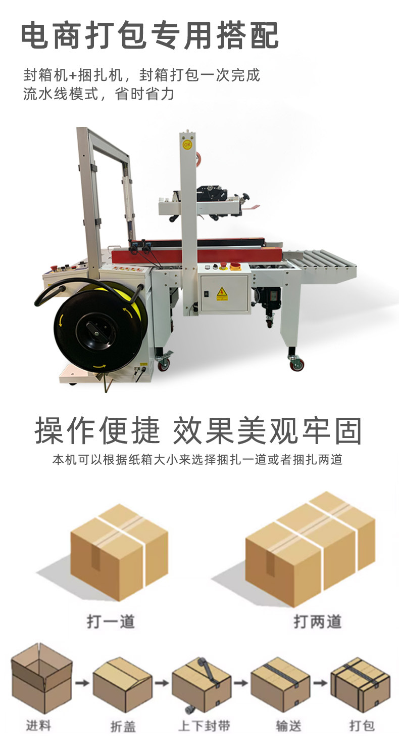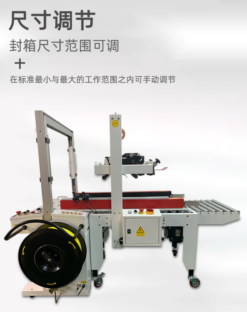 - 適用范圍廣:可以對各種尺寸和形狀的箱子進行封箱打包,只要箱子的尺寸在機器的設計范圍內。通過調整相關的參數和部件,如輸送帶寬度、折頁板位置、打包帶長度等,能夠適應不同類型的包裝需求,具有很強的通用性。
