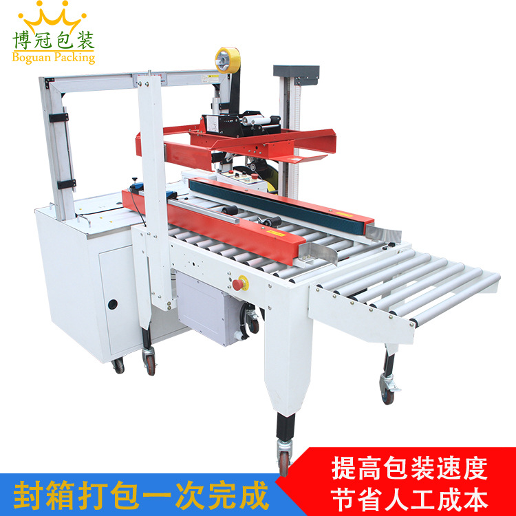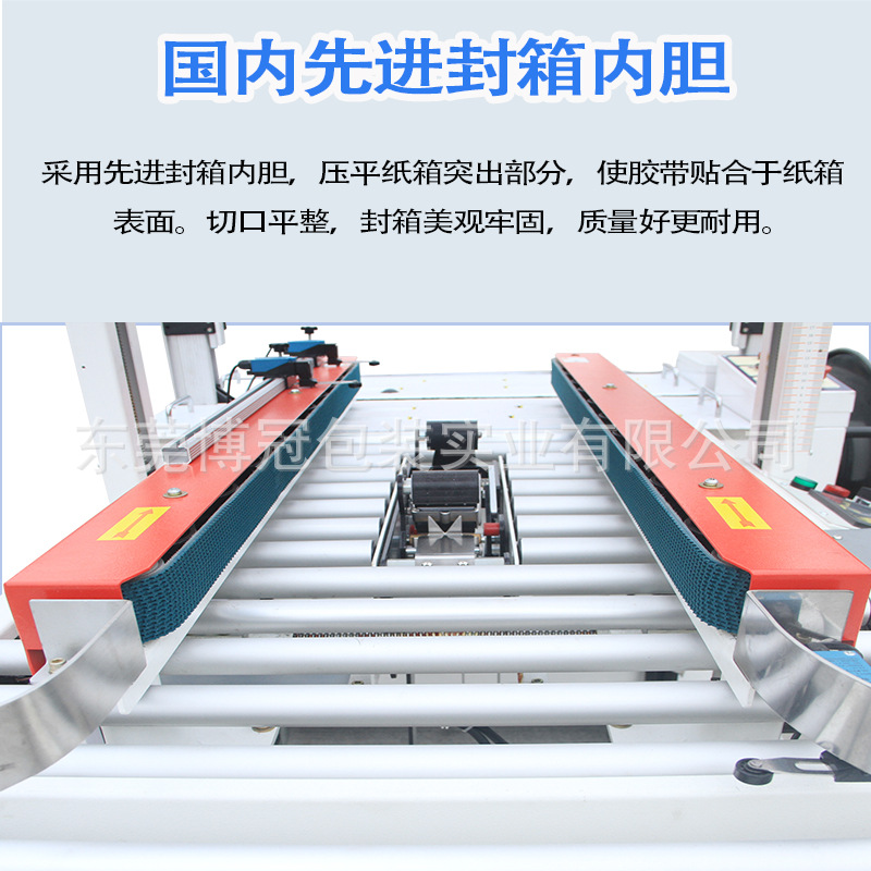- 一字封箱打包機整體結構緊湊,各個工作模塊緊密相連。輸送部分、封箱部分和打包部分在空間上合理布局,既保證了工作流程的順暢,又最大程度地減少了設備的占地面積。這種緊湊設計使其能夠方便地安裝在各種生產環境中,如小型工廠車間、電商倉庫等。