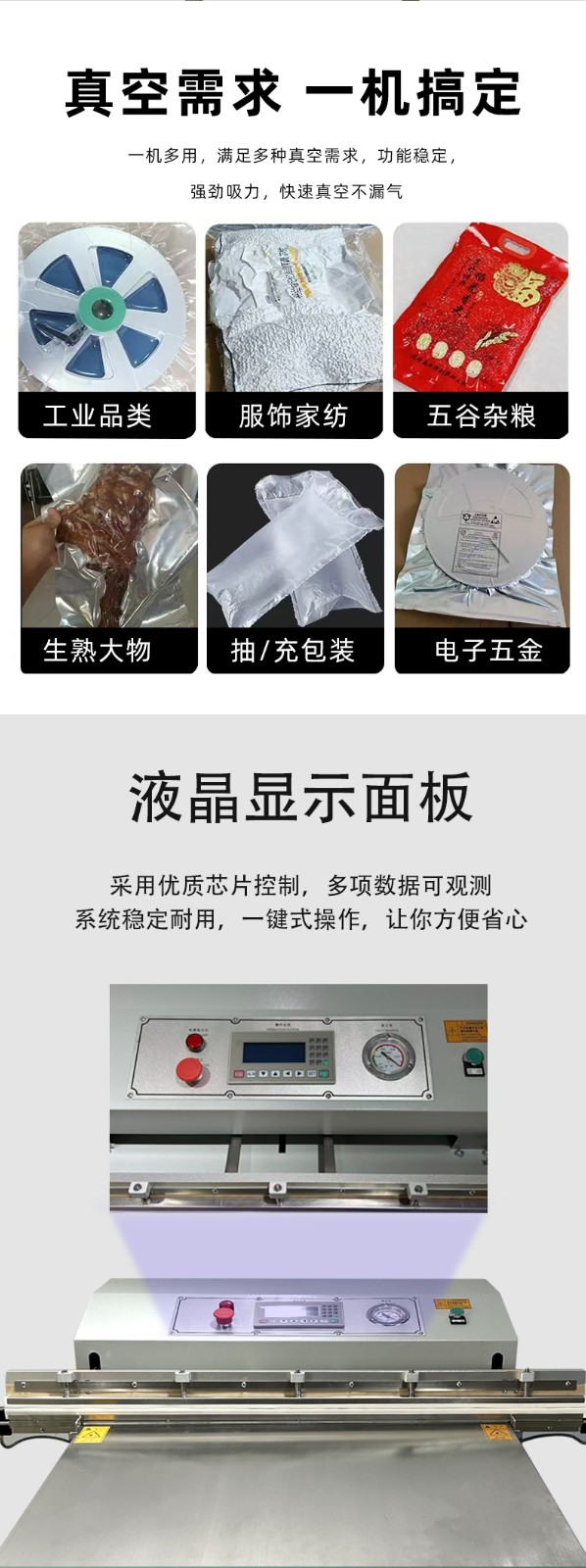 - 抽真空效果穩定,能有效隔絕空氣、水分,防止產品氧化、霉變、生銹,延長保質期和儲存周期。