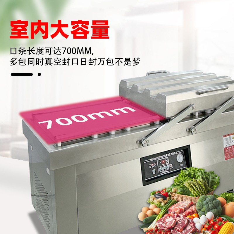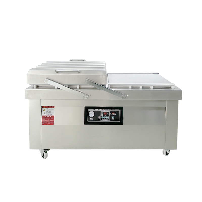 - 交替作業(yè),效率提升 50% 以上雙室機(jī)型的兩個(gè)真空室可實(shí)現(xiàn) “一工一備”:當(dāng)其中一個(gè)真空室正在進(jìn)行抽真空、熱封作業(yè)時(shí),操作人員可以在另一個(gè)真空室完成物料擺放、袋口整理的準(zhǔn)備工作。單室機(jī)型則必須等抽真空 - 熱封 - 開蓋取件整個(gè)流程結(jié)束后,才能進(jìn)行下一批物料的擺放,存在明顯的操作等待空窗期。同等規(guī)格下,雙室機(jī)的單位時(shí)間包裝量是單室機(jī)的 1.5-2 倍,尤其適合中小型加工廠的連續(xù)批量生產(chǎn)。
