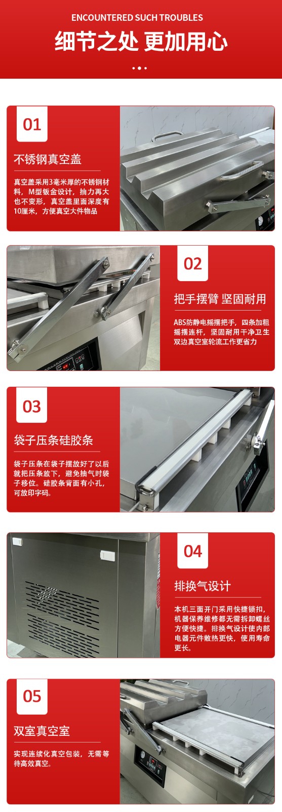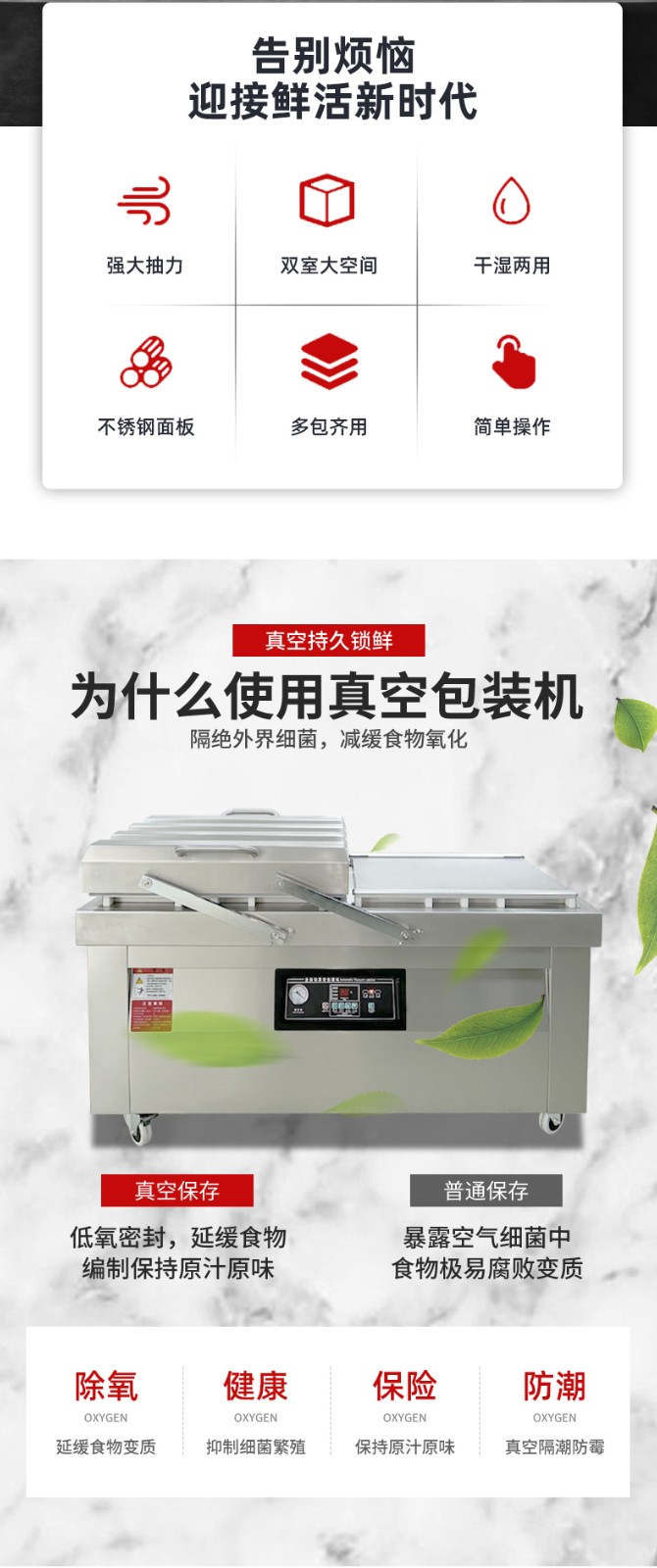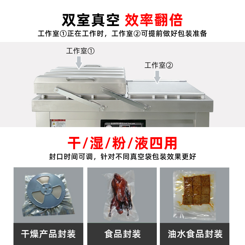 - 適配更多批量包裝場景對于食品、醫(yī)藥等需要連續(xù)、穩(wěn)定包裝的行業(yè),雙室機(jī)的連續(xù)性優(yōu)勢尤為突出,能避免因單室機(jī)的間斷性作業(yè)導(dǎo)致的產(chǎn)能瓶頸;而單室機(jī)更適合實(shí)驗(yàn)室、小型門店、家庭作坊等小批量、間歇性包裝的場景。