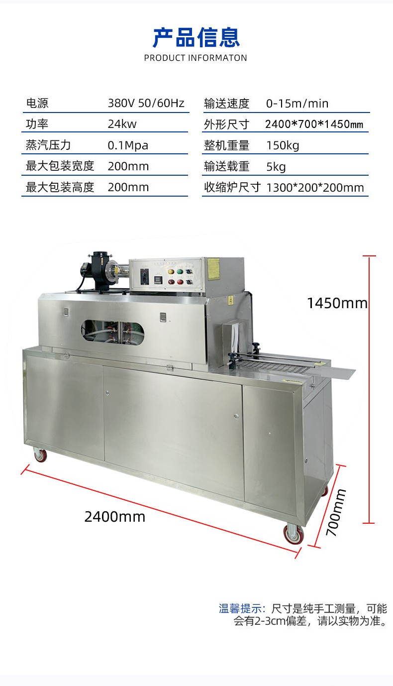 - 收縮效果好:蒸汽能夠全方位地接觸薄膜,使薄膜各個部位受熱均勻,收縮效果一致,可有效避免收縮不均勻、出現褶皺等問題,能讓包裝膜緊密、平整地貼合在產品表面,提升產品的外觀品質14。