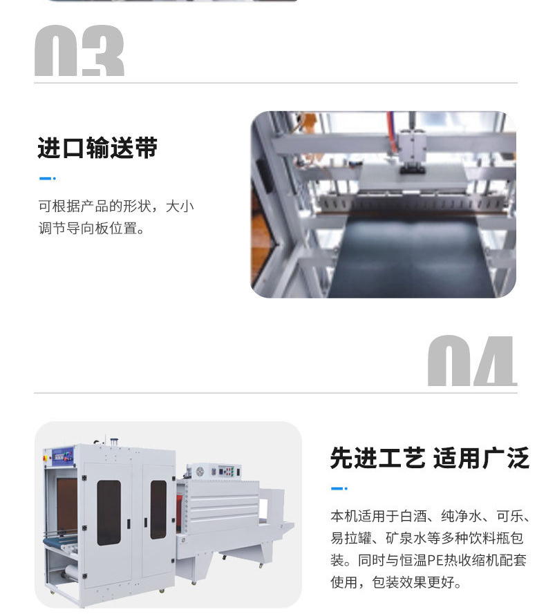 - 可擴展性強:設備可以與其他包裝設備進行集成,實現更復雜的包裝流程。例如,它可以與熱收縮機、貼標機、噴碼機等設備連接,形成完整的包裝生產線。通過這種集成,企業可以根據自身的生產需求,靈活擴展設備功能,提高包裝生產線的自動化程度和整體效率。